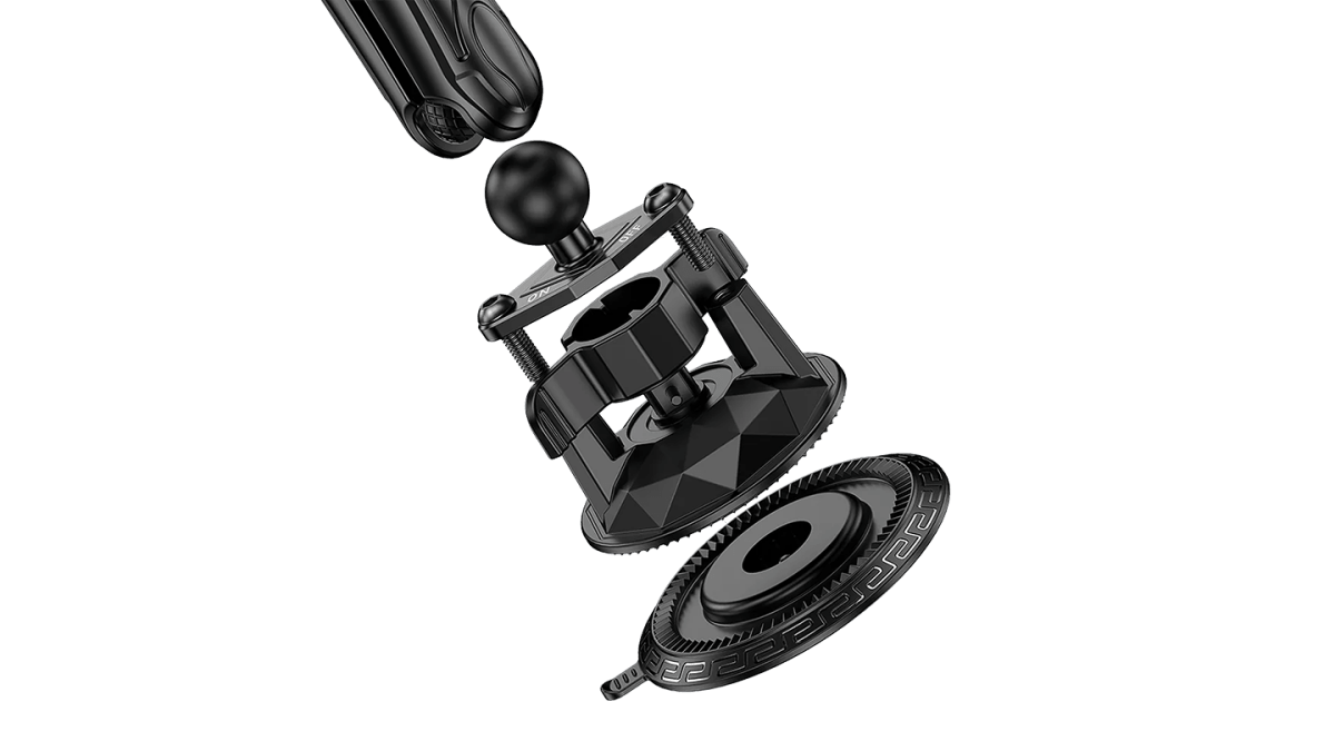 Pro Mount features a triple-action vacuum suction system designed to deliver a rock-solid hold on your vehicle’s windshield or any smooth surface. With a single twist of the locking knob, the mechanism creates a powerful vacuum seal, engages a secondary lock to prevent air leakage, and activates an additional stabilising layer for extra security. This three-stage system ensures the mount stays firmly in place even when exposed to road vibrations, sudden stops, or changes in temperature.